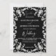 Décor moderne vintage noir et blanc élégant tout en un mariage éditable invitation modèle instantané téléchargement numérique, blanc argenté ornements noir arrière - plan faire-part de mariage avec détails mariages et code RSVP QR à l'arrière