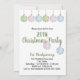 Cette invitation à la fête comporte trois ornements de Noël ronds de couleur non traditionnelle en vert pastel, rose et bleu avec des étoiles blanches formant un arbre abstrait. Les ornements sont empilés et décalés en taille pour former une forme d'arbre de Noël. Le thème de l'ornement est repris au dos avec tout le texte de la fête. Personnalisez le texte sur le devant et le dos pour les détails de votre fête.