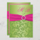 Invitation décorée d'un monogramme de damassé rose