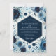 This enchanting design features a lush tapestry of deep blue and lighter blue florals with touches of muted greenery. Evoking a sense of deep, romantic elegance, the artwork is reminiscent of detailed botanical illustrations. The cool color palette creates a sophisticated and timeless atmosphere for a memorable occasion.