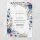 A rich tapestry of deep blue and soft pink blooms unfurls across this artistic design. Delicate brushstrokes evoke a romantic, ethereal mood, perfect for a sophisticated union. Golden accents add a touch of elegance to the floral arrangement.