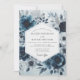A rich tapestry of deep blue and slate grey blossoms unfolds across this design. Lush botanical elements and painterly floral accents create an atmosphere of sophisticated romance. This enchanting composition evokes a mood of vintage elegance, perfect for a memorable occasion.