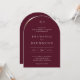 Classic style arch wedding invitation featuring a simple yet elegant design in a deep burgundy color that is perfect for a fall wedding or a winter / Christmas wedding. Use the template to add a photo or remove it in the design editing tool.
