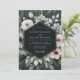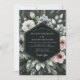 This design evokes a moody, sophisticated ambiance with a rich palette of deep emerald greens and muted florals. Delicate roses and lush foliage create a romantic and enchanting atmosphere for a special occasion.