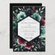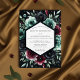 This design evokes a mood of dramatic romance with deep teal and burgundy blooms artfully arranged. Lush foliage accents the rich floral imagery, creating an opulent and enchanting feel for any special occasion.