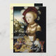 Raisins rouges jaunes pendus avec un ruban bleu, vignes, feuilles d'automne rouges et vertes. Belle fille blonde avec une robe somptueuse et des bijoux en or avec un chapeau rouge et des plumes blanches et paysage lacustre en arrière-plan par le peintre allemand Lucas Cranach l'Ancien 1530. Collage numérique de style vintage classique et élégant. Avec des peintures flamandes et allemandes. Ce design de la Renaissance classe est parfait pour les mariages d'automne, les célébrations d'anniversaire, les anniversaires de Sweet 16, les cartes de sauvegarde de date, les cartes de remerciement, les baby showers, les fêtes de fin d'année, les réunions de famille. Il peut également être utilisé comme invitations d'affaires pour les nutritionnistes, les diététistes, les traiteurs, les services alimentaires, la préparation ou la restauration, la restauration,