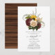 Invitation au déjeuner des demoiselles d'honneur avec des roses bordeaux et blanches et des tournesols avec une typographie élégante à la main.