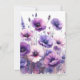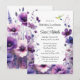 Cette invitation d'anniversaire présente une illustration aquarelle de fleurs d'hibiscus violettes. Le design floral est positionné de manière artistique pour chevaucher la zone de texte, créant un cadre visuellement attrayant. Ce modèle personnalisable permet une édition facile à la fois du design floral et de la police et de la couleur du texte. Œuvre d'art générée par l'IA avec une direction de design par Susang6.