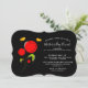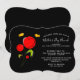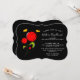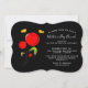 Une illustration fantaisiste avec plusieurs fleurs rouges avec de gros cœurs attachés à une tige verte. 2 papillons jaunes planant à proximité. Fond noir. Personnalisez cette invitation de déjeuner de la fête des mères avec vos propres détails de fête.