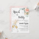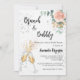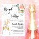 Une invitation moderne, élégante et glamour pour un brunch pétillant en l'honneur de la future mariée. Un fond blanc avec des bulles, une paire de flûtes, des verres, une fleur rose gold et de la verdure d'eucalyptus. Le nom est écrit avec un style de lettrage à la main moderne. Personnalisez et ajoutez les détails de votre fête.