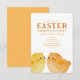 Invitation au déjeuner de Pâques et à la chasse aux œufs avec deux petits poussins mignons en orange et jaune. Produit personnalisable pour une célébration mémorable. Parfait pour une fête de Pâques, une chasse aux œufs de Pâques, un pique-nique de Pâques ou un déjeuner de Pâques.