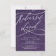 Cette invitation à déjeuner romantique à l'aquarelle violette est parfaite pour une simple répétition mariage. Le design classique moderne comprend des tourbillons fantaisistes et des fleurs fantaisistes avec une magnifique typographie élégante et lettrée à la main.