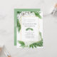 Feuilles tropicaux et magnolias blancs et sauge tendance, invitation déjeuner avec cadre géométrique doré.