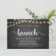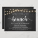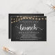 Magnifique carte d'annonce / invitation de déjeuner du bonheur éternel, mariage en fuite amoureuse, dans un style de tableau noir de ferme rustique, conception de guirlande lumineuse. C'est parfait pour votre réception de mariage et fête de célébration après le mariage. Ajoutez vos détails dans la même police / lettrage.