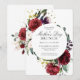 Célébrez maman avec cette invitation unique de déjeuner de la fête des mères à l'aquarelle florale. Elle comporte un beau cadre floral circulaire avec des bouquets de roses dans la combinaison de couleurs élégante de rouge burgundy, blanc, violet prune avec de la verdure éparpillée partout. Personnalisez le modèle de texte avec les informations de votre événement. Cette invitation est disponible à la fois en version imprimée et en téléchargement numérique pour l'envoyer électroniquement à vos invités.