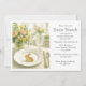 Cette invitation au brunch de Pâques présente une illustration élégante à l'aquarelle d'un décor de table soigneusement agencé, avec un centre de table floral, un verre à eau en cristal, des couverts en argent et un motif de lapin charmant sur l'assiette. Le design transmet efficacement la chaleur d'une réunion de famille à Pâques. Personnalisez ce modèle d'invitation polyvalent avec vos détails, disponible à la fois sous forme de carton de haute qualité et de formats de téléchargement numérique pratiques.