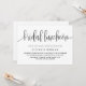 Fêtons la future mariée ! Famille Invitation et amis avec cette invitation à déjeuner nuptiale personnalisable. Il présente la calligraphie lunaire et la typographie classique. Personnalisez en ajoutant des noms, des dates, des adresses et d'autres détails. Cette invitation à déjeuner nuptiale en noir et blanc est parfaite pour toute saison de douche nuptiale et de thème. D'autres couleurs sont disponibles.