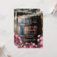 Ce charmant tonneau à whisky rustique sert de pièce de décoration de mariage unique, avec une apparence vieillie et patinée qui exsude une élégance vintage. Reposant sur une plateforme en bois, le tonneau est surmonté d'un couvercle robuste, parfait pour être utilisé comme accent décoratif ou présentoir fonctionnel. Une chaîne de lumières chaudes enroulée autour d'un poteau en bois éclaire doucement l'arrière-plan sombre, créant une ambiance accueillante. Des florales délicates roses et bordeaux encadrent le bas de la scène, ajoutant une touche romantique et sophistiquée, ce qui en fait un cadre idéal pour un mariage de style rustique, de grange ou champêtre.