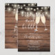 Une invitation de déjeuner rustique et champagne pour un enterrement de vie de jeune fille avec des verres à champagne et un nom en écriture signature, cette invitation élégante peut être personnalisée avec vos informations en lettrage chic sur un fond en bois rustique. Avec votre code QR de liste de mariage au verso. Conçu par Thisisnotme©