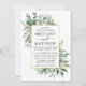 Moderne Elegant Delicate Watercolor Botanical Greenery Card comprend feuillage vert, feuilles bleu poussiéreux, feuilles verts sauge et d'autres belles verdure botanique. Cadre Or. Photo De Retour.