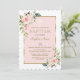 Invitation Délicat Fleurs Roses Blancs Croix Or Baptême