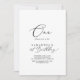 Cette délicate calligraphie noire invitation de premier anniversaire est parfaite pour une fête d'anniversaire moderne. Le design minimaliste romantique présente une belle et élégante typographie noire sur un arrière - plan blanc au look épuré et sobre.