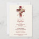 Invitation Delicate Burgundy Floral Christian Cross Baptism