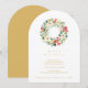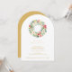 Delicate Chic Winter Christmas Wreath Holiday Party Invitations Cards in Digital Watercolor Style. Faux Gold Back.