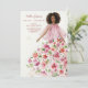This invitation stands out for its sophisticated watercolor effect, bringing an artistic, soft, and ethereal feel to the design. The illustration features a full-body woman in a graceful model pose, with dark hair and a delicate, refined presence. She wears a pink tulle dress adorned with flowers that appear to scatter softly in shades of pink, red, and white, accompanied by green leaves that add freshness and balance. The front background is white, allowing every brushstroke to be seen clearly, while the back of the invitation is red, adding warmth and contrast that elegantly complements the illustration without interfering with its artistic details. Every element conveys charm, femininity, and a romantic aura, making this invitation both exquisite and visually captivating.