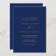 Cette délicate calligraphie or marine faire-part de mariage traditionnelle est parfait pour un mariage moderne. Le design minimaliste romantique présente une belle et élégante typographie de champagne jaune doré sur un arrière - plan bleu marine au look épuré et simple.