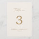 This delicate gold calligraphy 5x7" cream table no. table number is perfect for a modern wedding. The romantic minimalist design features lovely and elegant champagne golden yellow typography on an ivory cream background with a clean and simple look. The card prints on the front and back (double-sided). Items are printed exactly as they appear on your screen when you add to cart, so personalize and add each table number that you need to your cart individually.