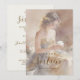 This Sweet Sixteen invitation celebrates youth and elegance with a pastel and romantic style. The illustration shows a young woman wearing a golden and gray strapless gown, surrounded by soft flowers, with a delicately blurred background that adds serenity and harmony. The scene conveys tenderness and joy, capturing a contemplative and charming moment with a watercolor effect that highlights softness and warmth.