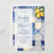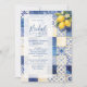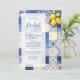 Delicate Mediterranean Tiles and Lemons Flowers in Blue Shades Wedding Bridal Shower Invitations Cards.
