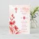 Delicate Red & Pink Wildflowers Christian Baptism Invitation Card Design with Back Family Photo.