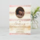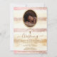 Delicate Romantic Glitter Stripes Baby Baptist Christening Invitation Card with Oval Photo.