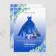 Allez-vous adopter un thème de quinceañera bleu ? Invitez vos Damas à la grande fête avec style. Le design présente de magnifiques robes de quinceañera bleues et des fleurs bleues.