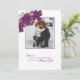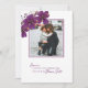 Une charmante carte de demande de demoiselle d'honneur présente de belles fleurs aquarelles violettes vibrantes, rehaussées de points de paillettes dorées. Personnalisable facilement avec votre photo et votre message spécial.