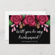 Carte de proposition de demoiselle d'honneur avec roses et vignes vectorielles modernes. Tout le texte peut être ajusté.