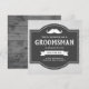 Invitez vos garçons d'honneur avec cette carte de demande rustique présentant une moustache classique avec une typographie vintage sur un fond de parchemin gris. Ajoutez simplement vos détails d'événement sur ce modèle facile à utiliser pour en faire une invitation unique. Retournez la carte pour révéler une texture de bois de grange rustique au dos de la carte.