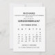 Cette carte de demande témoin a un calendrier modifiable et une police de caractères exquise. Modifiez le mois et remplissez les dates pour chaque jour du mois.Dans la section de personnalisation, cliquez sur le bouton bleu 'éditer à l'aide de l'outil de conception' pour déplacer le cœur.