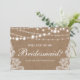 Invitation Demoiselle d'honneur rustique de mariage en toile