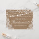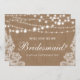 Carte de demoiselle d'honneur en toile de jute avec guirlande lumineuse et dentelle pour mariage rustique