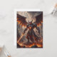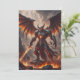 Cette image captivante présente une figure démoniaque puissante debout dans un paysage enflammé. La figure présente de grandes ailes ressemblant à des chauves-souris englouties dans les flammes et est revêtue d'armure foncée et pointue. Ses yeux rouges brillants et son expression menaçante, avec de grandes cornes incurvées, ajoutent à sa formidable présence. Tenant une épée flamboyante dans sa main droite, le démon échappe au pouvoir, avec sa poitrine brillante comme alimentée par un feu interne. L'arrière - plan dramatique d'un ciel orageux, de la foudre et de bâtiments de style gothique renforce l'atmosphère intense et épique de la scène, faisant de cette oeuvre une représentation frappante d'une créature mythique dans un moment de domination.
