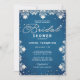 Un denim simple, moderne, élégant et chic et diamants modèle d'invitation à la douche nuptiale avec un arrière - plan denim turquoise, le mot BRIDAL couvert de diamants blancs (simulés, pas de vrais strass) et dans le script de calligraphie moderne, une bordure en dentelle (aussi un effet numérique, pas de vrai dentelle) et la typographie en blanc. Un design chic "denim et diamants" pour une mariée moderne.