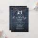 Un modèle simple, moderne, élégant et chic 21ème anniversaire d'invitation avec un arrière - plan denim bleu, le mot BIRTHDAY couvert de diamants blancs (simulé, pas de vrais diamants) et dans le script de calligraphie moderne, et typographie rustique en blanc, ainsi que des lumières à cordes rustiques. Un design chic "denim et diamants" pour une fille à son vingt et unième anniversaire.