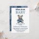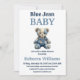Invitation Denim Patchwork Bear Boy Blue Jean Baby Shower