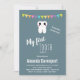 Invitation à ma fête de première dent avec un dessin d'une grande dent blanche avec un sourire kawaii mignon et de grands yeux heureux.
