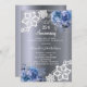 Pour un 25ème anniversaire de mariage élégant et romantique, mariage d'argent. Un arrière - plan faux argent foncé décoré de fleurs bleues, rose, dentelle blanche. Personnalisez et ajoutez vos noms et détails.
