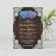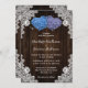Ces invitations de mariage rustique violet et bleu fleuri avec deux fleurs en forme de coeur d'hydrangée sur un arrière - plan en bois de grange orné de dentelle blanche fleurie sont parfaites pour inviter vos invités à votre mariage rustique violet et bleu. Éléments correspondants disponibles.