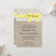 Cette invitation personnalisée à un mariage est la combinaison parfaite de tradition et de tendance. Le arrière - plan aux allures de burlap est parfait pour un mariage à thème rustique ou vintage et l'accent dentelle ajoute une touche classique et romantique. Coordonnées avec la collection complète de dates de sauvegarde, cartes RSVP, poste personnalisé, et plus encore! Envoyez-moi un e-mail pour des couleurs personnalisées ! REMARQUE - Il s'agit d'une image de haute qualité de burlap, dentelle et ruban; cette invitation ne contient pas de burlap, dentelle ou ruban.Merci !